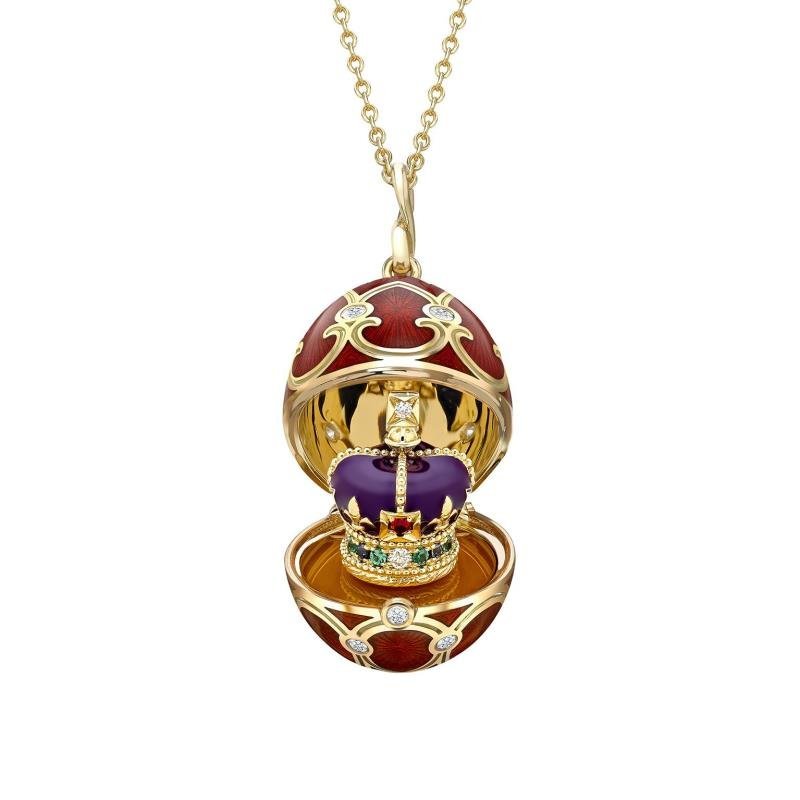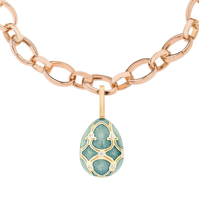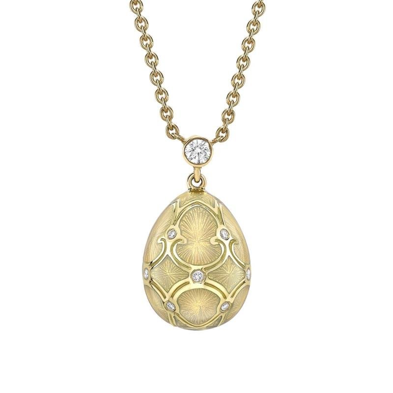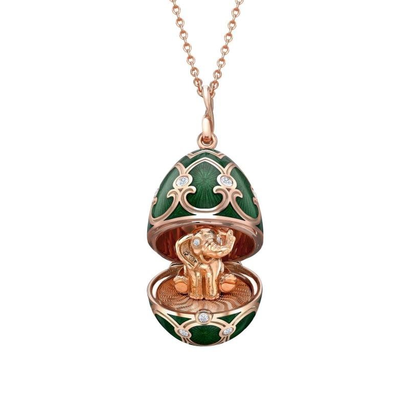 Limited-Edition 18k Yellow Gold Green Guilloch Enamel Egg Objet with Twin Flower Surprise Call for price