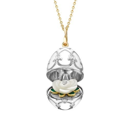 Heritage White and Yellow Gold Diamond and White Enamel Carved Mother of Pearl Rose Surprise Locket Call for price
