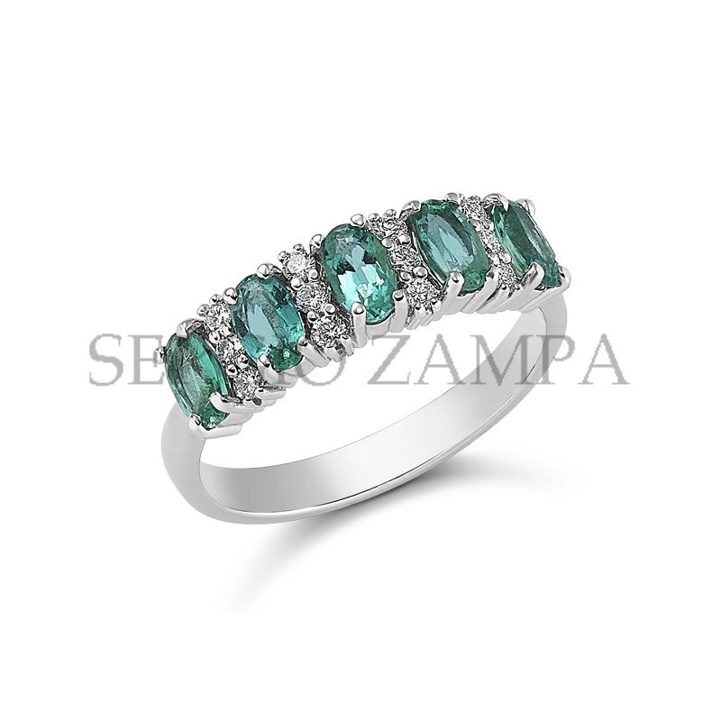 Ring, 18ct white gold with Natural Emeralds and Natural Diamonds