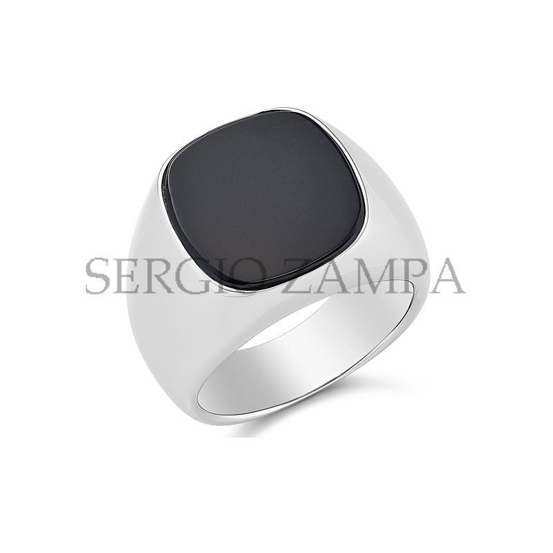 Ring, 18ct white gold with Natural Onyx