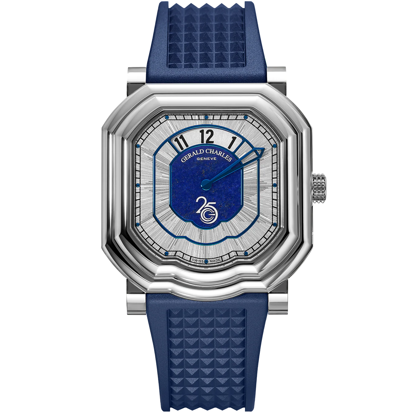 LIMITED EDITION OF 100 PIECES The Maestro GC39 25th Anniversary Edition reimagines the iconic 2005 Maestro GC39 by Mr. Genta. The watch features the rare jumping hours complication, a superb manufacture movement crafted in-house, and a lapis lazuli dial brought to life through Meta Guillochage, a pioneering micro-chemical engraving technique