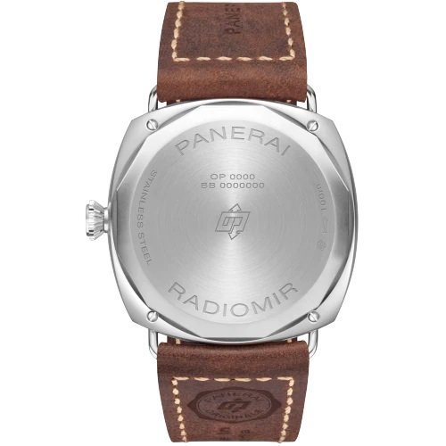 MOVEMENT. Hand-wound mechanical, Panerai P.6000 caliber, entirely made by Panerai, 15 lignes, 4.5 mm thick, 19 jewels, 21,600 alternations / hour. Incabloc shockproof device. Power reserve of 3 days, one barrel. 110 components.. . FUNCTIONS. Hours, minutes. . CASHIER. 45 mm diameter, AISI 316L patinated steel. . BEZEL. Patina in steel. . FUND. Screws, steel. . CLOCK FACE. Gradient black with luminous Arabic numerals and hour markers. . WATERPROOFNESS. “10 bar (~ 100 meters)”. . STRAP. beige Stitching, 27.0 / 22.0 Standard size