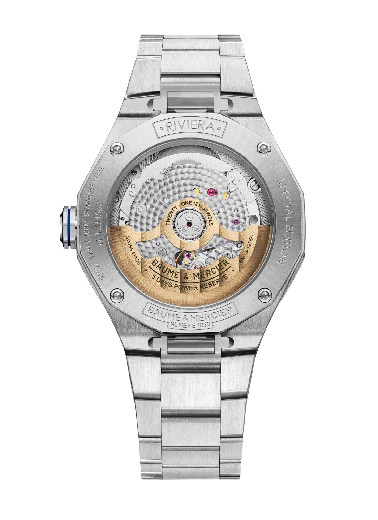 The Riviera 10822 39 mm, powered by the Baumatic manufacture movement with a 5-day power reserve, has been designed to meet the demands of today’s men. Its vertical, vintage-inspired, brushed gold dial reveals the wearer’s perception of time. That of a man who feels in control of his time and his life. Confident, he knows what he wants and what he expects from the watch he has chosen to accompany him at every moment of his life. He is confident in his choice because he is counting on reliability and good workmanship; on the heritage of a Maison whose watchmaking excellence has been perpetuated for nearly 200 years. While retaining its original lines, this model is delicately embellished with a vintage gold tone, an on-trend color that reflects the Maison’s desire to move with the times.